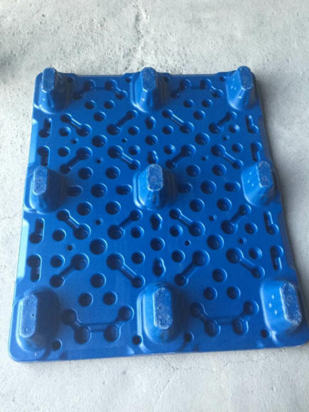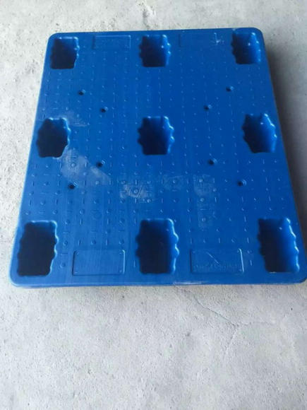 名稱 : 吹塑托盤 擠吹托盤 中空托盤 材料 : 抗沖擊耐低溫耐腐蝕高分子聚乙烯UHBMPE 承重:動載1.0-2噸,靜載4-6噸 顏色:藍色(量大可定做顏色) 尺寸:1200*1000*150mm 1100*1100*150mm 1140*1140*140 1300*1100*150(雙面) 1400*1200*150(雙面) 1200*1200*150(雙面) 1050*760*170(印刷專用)1040*760*140(印刷專用) 1020*715*160(印刷專用) 進叉:四 面 進 叉 車,適合叉車,單面托盤手動液壓車使用 雙面托盤吹適用機械叉車 底部結(jié)構(gòu):九腳型 雙面型 平面川字型 制作工藝:吹塑吹塑托盤 (blow moulding pallet )是一種發(fā)展迅速的塑料加工方法而成型的產(chǎn)品。吹塑托盤成型工藝所采用的吹塑設(shè)備一般均需要較為大型的中空成型機,采用HMWHDPE塑料擠出一次吹塑成型,生產(chǎn)時將HMWHDPE塑料經(jīng)擠出成管狀塑料型坯,趁熱置于對開模中,閉模后立即在塑料型坯內(nèi)通入壓縮空氣,使塑料型坯吹脹而緊貼在模具內(nèi)壁上,經(jīng)冷卻定型脫模,即得到各種規(guī)格的吹塑托盤。目前吹塑中空容器的體積可達數(shù)千升,國內(nèi)已經(jīng)研發(fā)制造的大型中空成型機已經(jīng)達到2000L,設(shè)備采用了計算機控制。生產(chǎn)吹塑托盤一般只能采用HMWHDPE為原料。因此其產(chǎn)品質(zhì)量是塑料托盤里面質(zhì)量水平最好的。 目前,國內(nèi)已經(jīng)研發(fā)成功高剛度、高強度的吹塑托盤,采用常規(guī)的川字型結(jié)構(gòu),可以在高架庫房,高層貨架,各種生產(chǎn)線上使用,其托盤內(nèi)部不需要設(shè)置任何其他的鋼管,使用中安全系數(shù)高,動載達到2t以上,靜載達到6t以上,貨架架空載荷可以達到1.5t,使用場地的環(huán)境溫度可以在-40°~40°C條件下穩(wěn)定工作,使用壽命可以達到8~10年。優(yōu)點優(yōu)勢 編輯 吹塑托盤能配合機械叉車和手動液壓搬運叉車使用,完成對貨物的搬運、周轉(zhuǎn)、堆碼。有機械叉車和手動液壓搬運叉車通用的四面叉口,產(chǎn)品可在無條件使用機械叉車的場地和環(huán)境中使用。 吹塑托盤產(chǎn)品選用高分子量高密度聚乙烯樹脂,經(jīng)擠出一次吹塑成型。成型過程快速、充分;產(chǎn)品成型飽滿,內(nèi)在質(zhì)量和性能穩(wěn)定。 吹塑托盤產(chǎn)品造型新穎別致,結(jié)構(gòu)設(shè)計合理,表面為凹槽設(shè)計,防滑性好,無邊角余料。 吹塑托盤承載能力:靜載荷:6~7T;動載荷:1~2T;架空載荷:1~1.5T。突出特點 編輯 降低成本:吹塑托盤高強度、高剛度吹塑托盤通過改進結(jié)構(gòu)設(shè)計與采用特殊吹塑方法可以大幅度提高吹塑托盤的剛度與強度,并且可實現(xiàn)吹塑托盤表面平整,從而提高對使用環(huán)境的適應(yīng)性能與使用壽命;可大幅度的降低使用成本。 環(huán)保性能好:吹塑托盤無毒無味,耐酸堿鹽的腐蝕,易于清洗消毒,不腐爛,同時廢舊托盤可回收利用,符合環(huán)保要求。 安全性能好:不助燃、不導(dǎo)電、不產(chǎn)生靜電、防滑、無毛刺飛邊、無其他輔助連接,可確保貨物和作業(yè)者的安全。